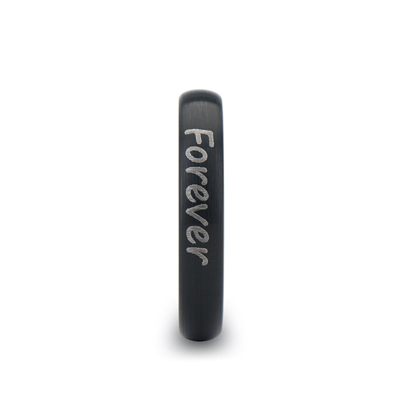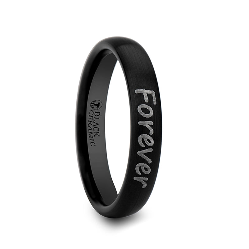 The brushed surface of this engaging wedding band holds an infinity of promise. One that should never be taken lightly. And in your case we are quite sure you went into this knowing exactly what you were looking for. Even if you didn ' know it until the moment your eyes saw nothing beside her. The word became a frequent flier in your heart and now it plays beautifully through your mind. She has been your forever since the beginning of time and now you both are finally in each other's arms as well. What a wonderful forever it's turned out to be, may your bond only grow stronger with time, let this beautiful black ceramic band remind you of the strength that bond began with and build your excitement because forever is a long time, and she has promised it to you, it only gets better from here.