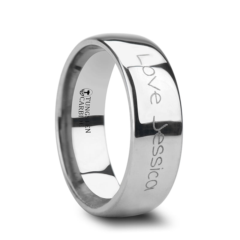 Custom Handwriting Engraved Domed Tungsten Men's Ring