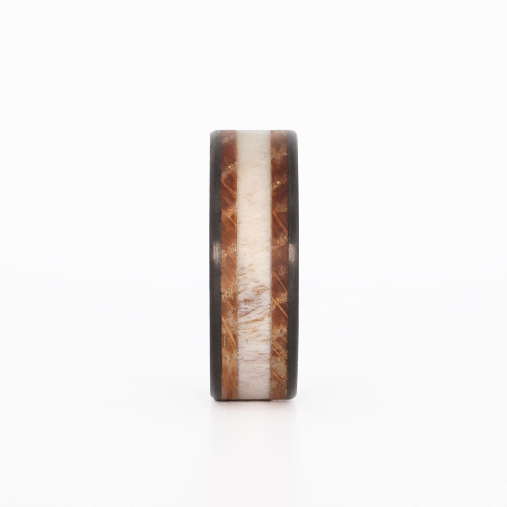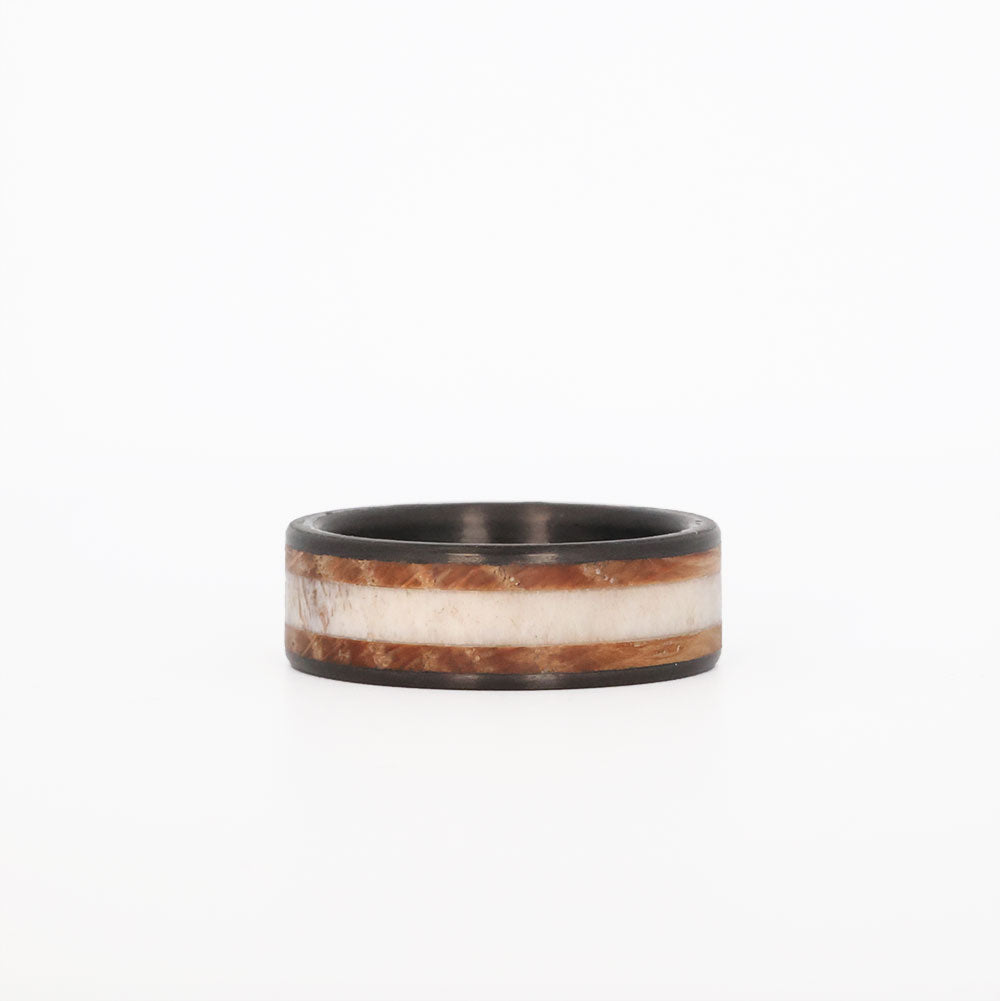 Deer Antler & Whiskey Barrel Men's Carbon Fiber Wedding Band