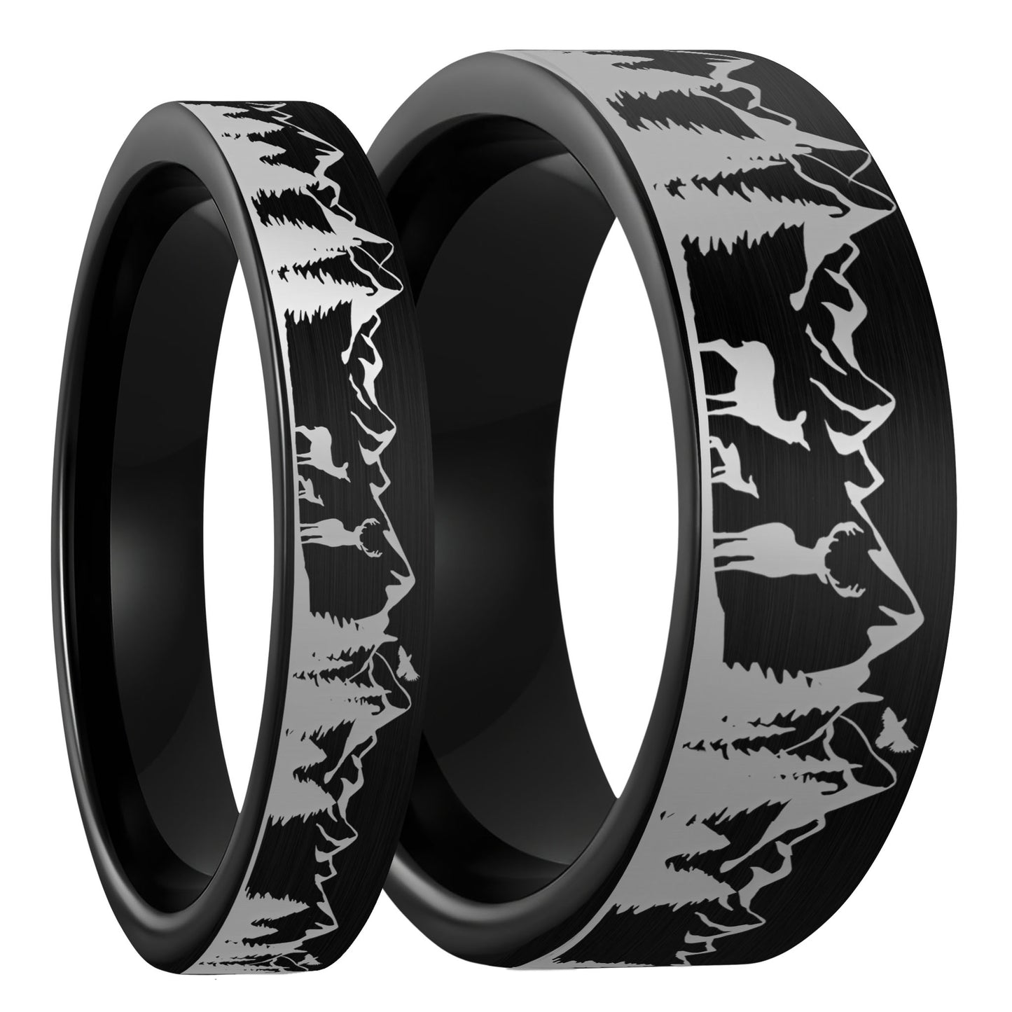 Deer Mountain Range Brushed Black Tungsten Couple's Matching Wedding Band Set