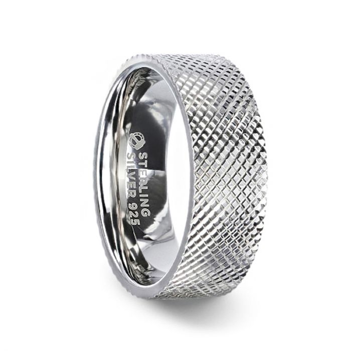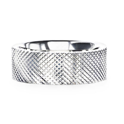 Diagonal Knurl Grooved Silver Men's Wedding Band