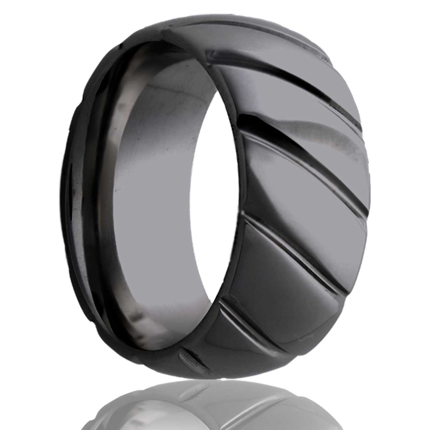 Diagonal Grooves Domed Zirconium Men's Wedding Band