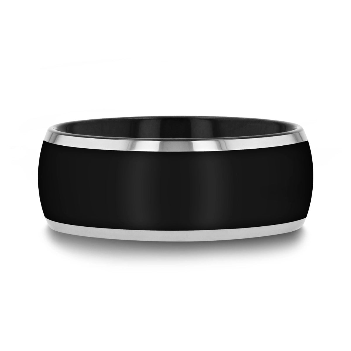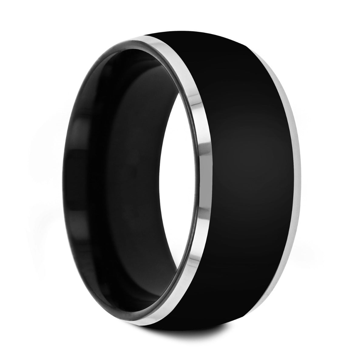 Domed Black Tungsten Men's Wedding Band with Contrasting Silver Edges