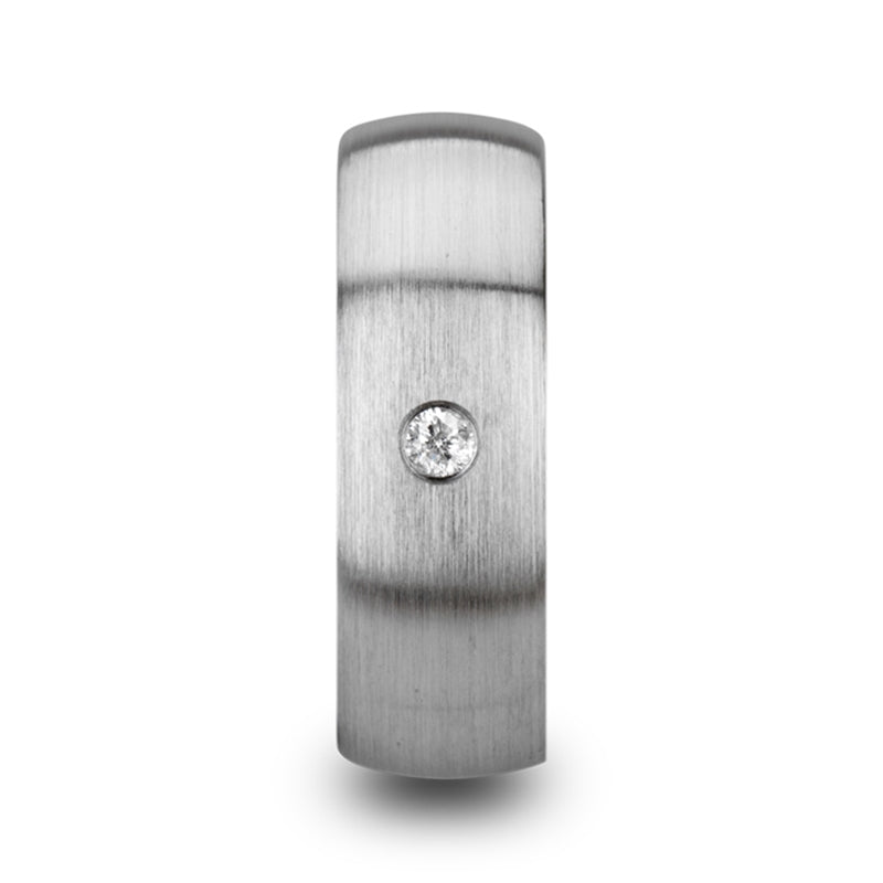 Domed Brushed Tungsten Men's Wedding Band with Diamond