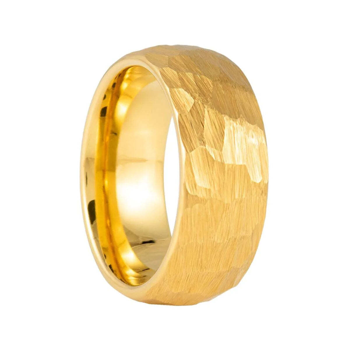 Domed Hammered Gold Tungsten Men's Wedding Band