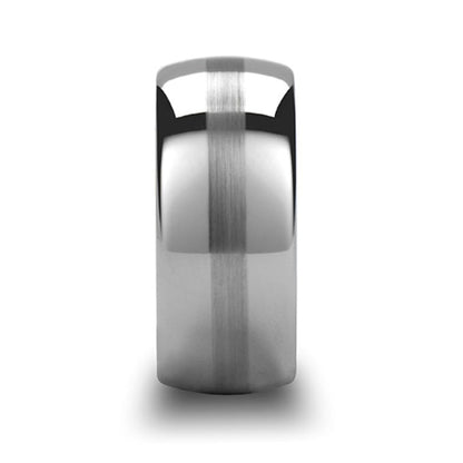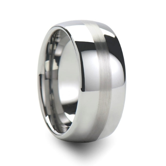 Domed Tungsten Men's Wedding Band with Brushed Stripe