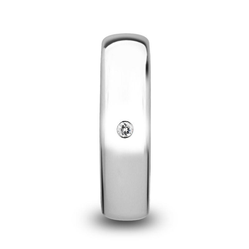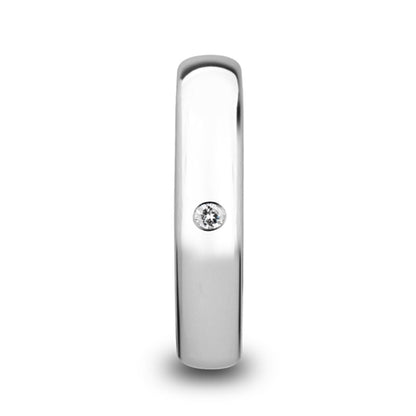 Painstakingly crafted by top-notch jewelry designers, this ring combines two of the hardest substances in the world: Tungsten carbide and diamond. The end result is a one-of-a-kind wedding band that emanates elegance and power. Intended for both men and women, this style is minimalistic, yet the subtle appeal of its polished and domed body is undeniable. The outer band shines with a brilliant and clear hue in the light, while the many facets of the diamond eye sparkle. Unavailable at most run-of-the-mill jewelry stores, this unique ring is a perfect symbol of the unconditional love and commitment that goes into any good marriage.