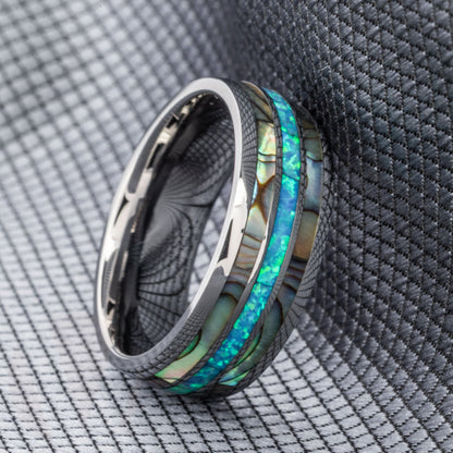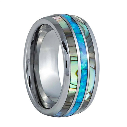Abalone & Blue Opal Inlay Tungsten Men's Wedding Band