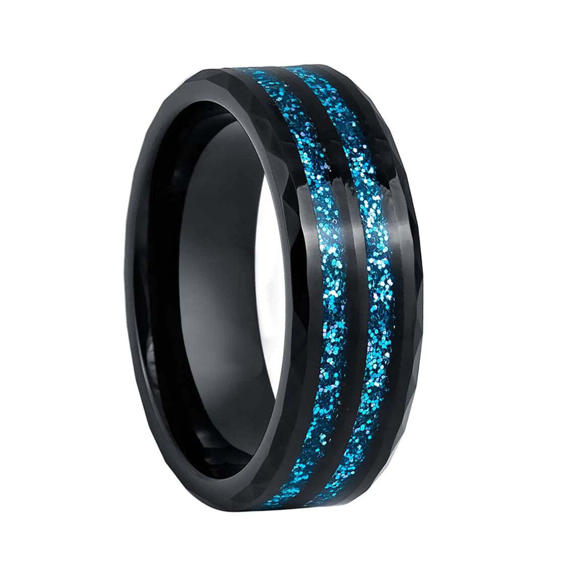 - Material: Tungsten & Dual Blue Sparkle Inlays