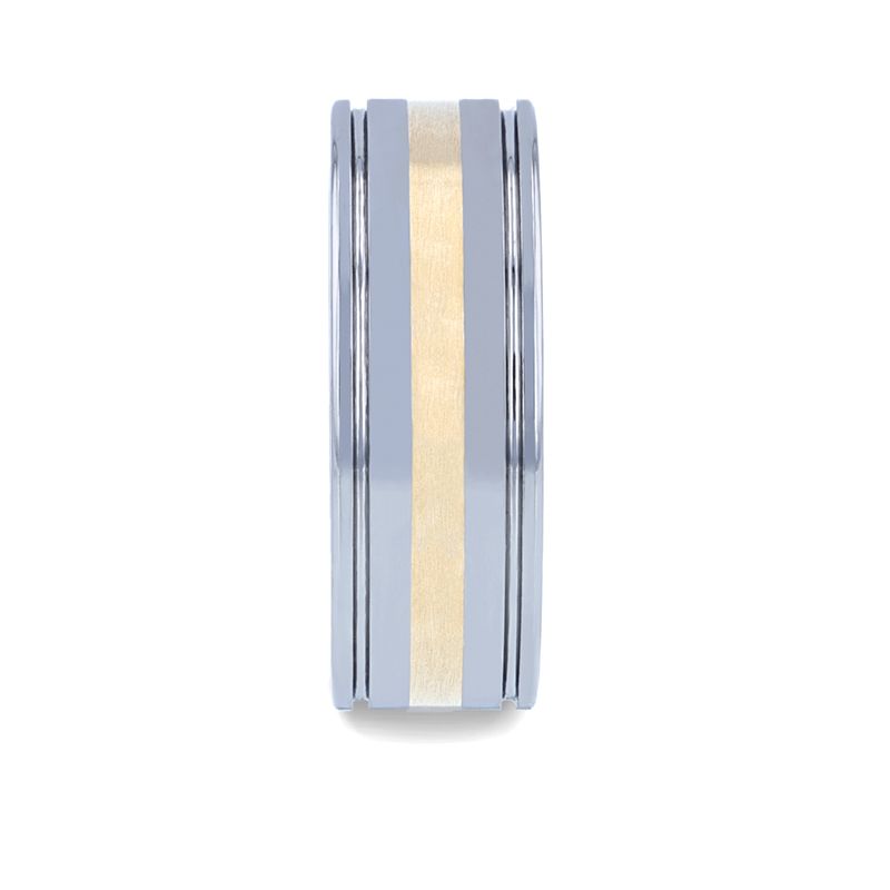 Dual Grooved Tungsten Men's Wedding Band with 14k Yellow Gold Inlay
