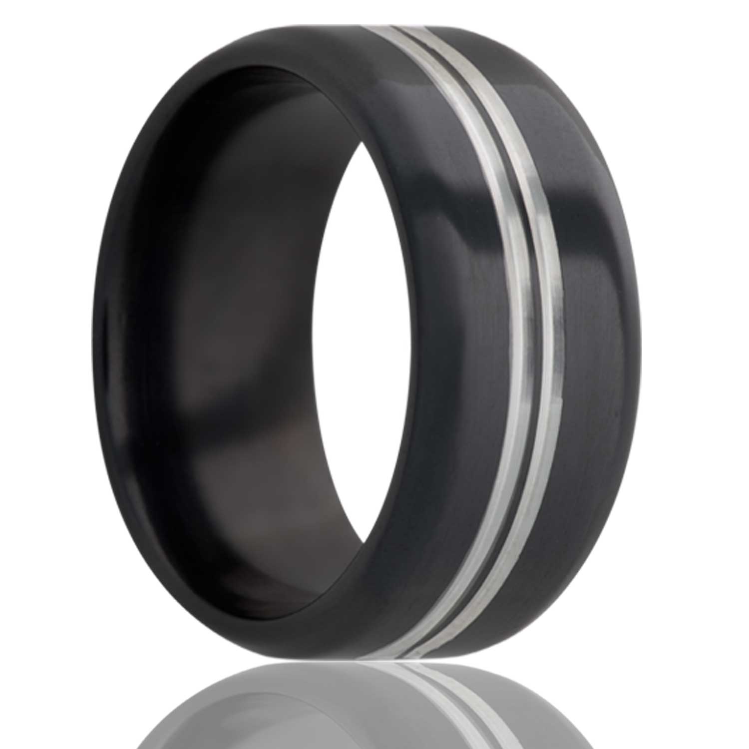 Dual Polished Center Grooves Zirconium Wedding Band with Beveled Edges