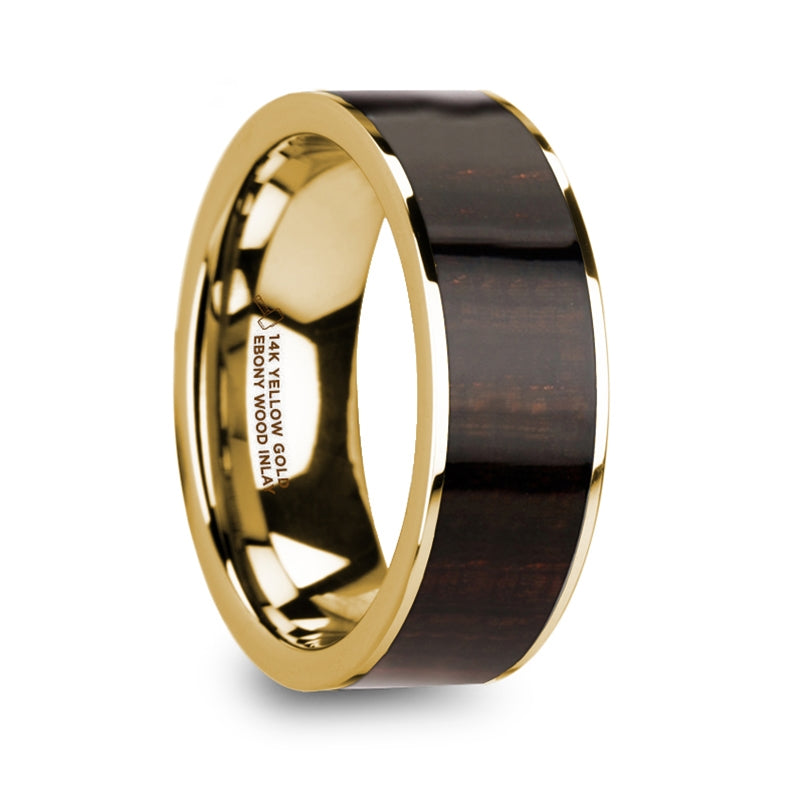 Ebony Wood Inlay 14k Yellow Gold Men's Wedding Band