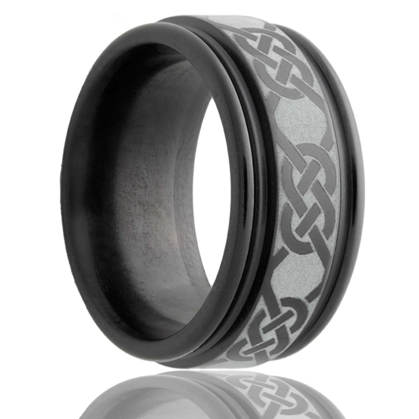Eternity Celtic Knot Grooved Zirconium Wedding Band