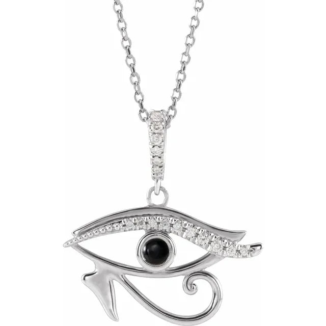 Eye of Horus Onyx & Diamond Necklace in Sterling Silver