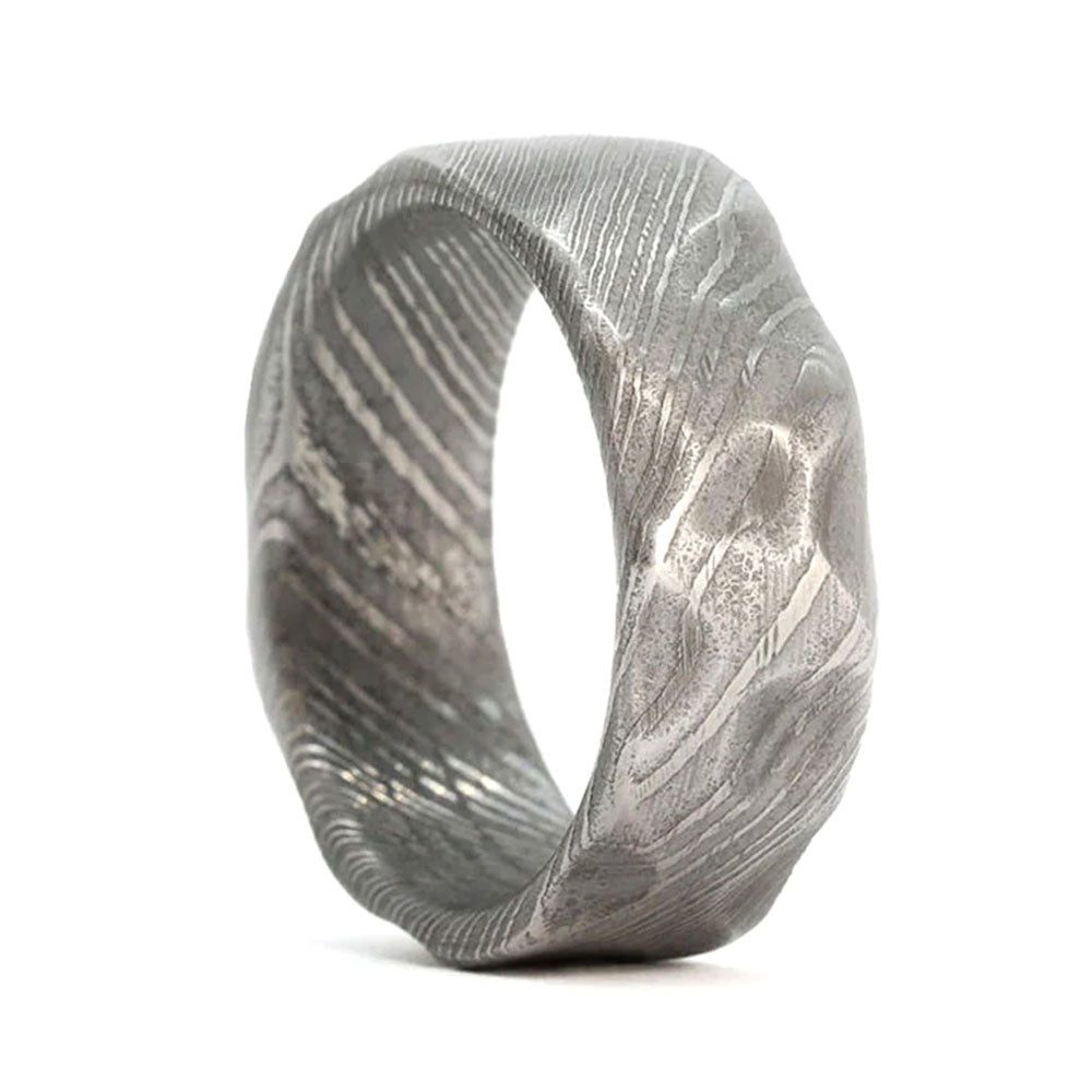 Hammered Damascus Steel Men's Wedding Band