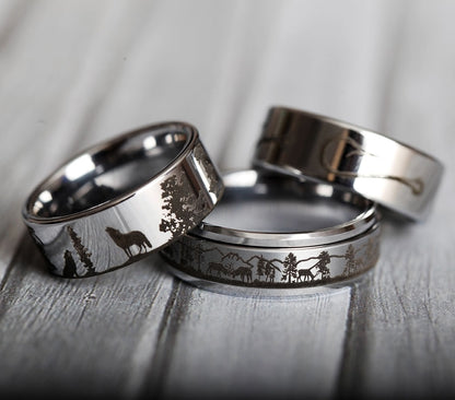 Deer & Mountain Range Tungsten Men's Wedding Band