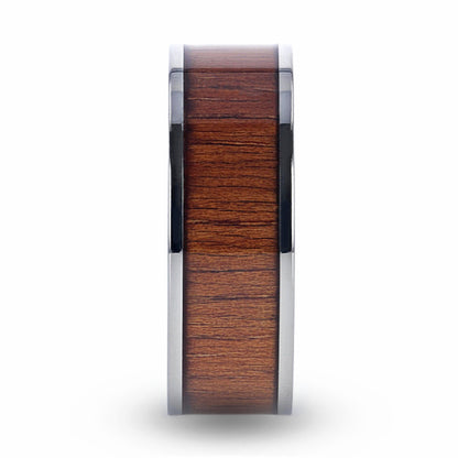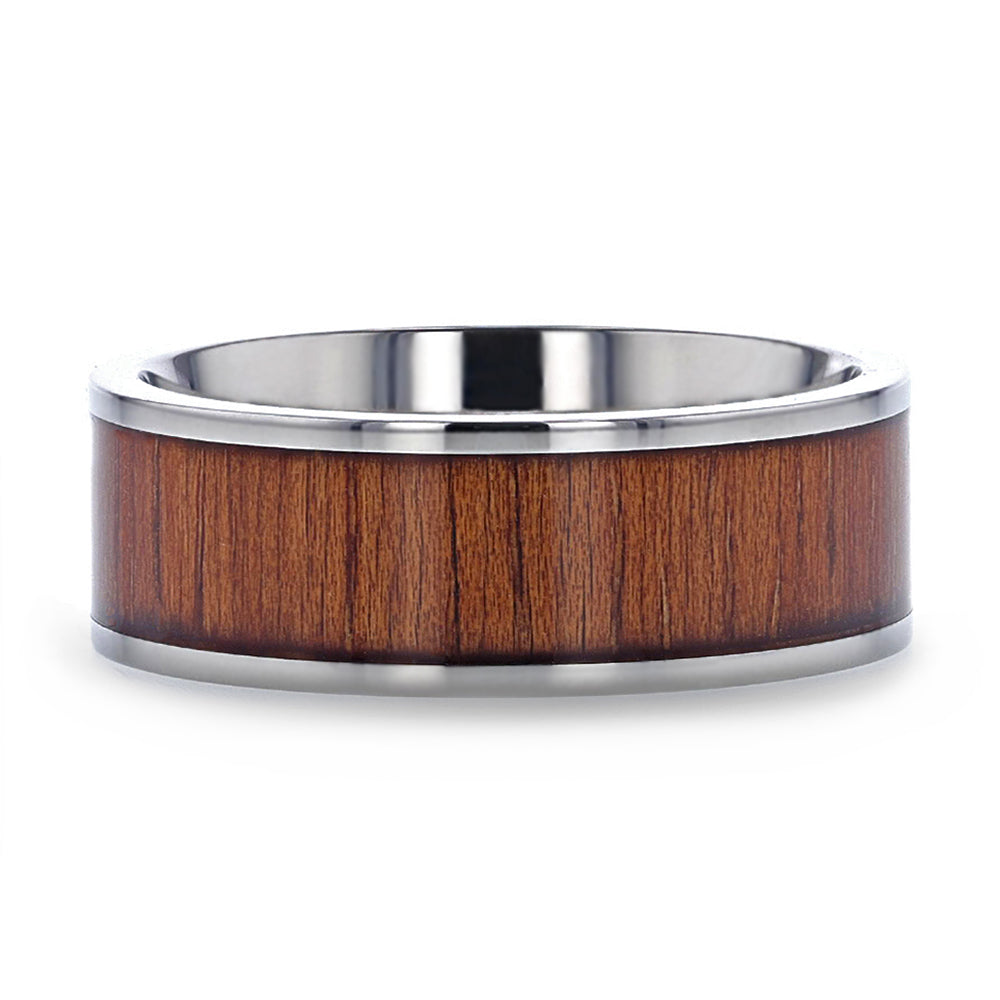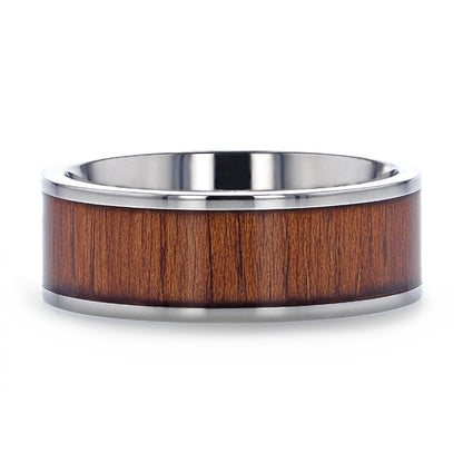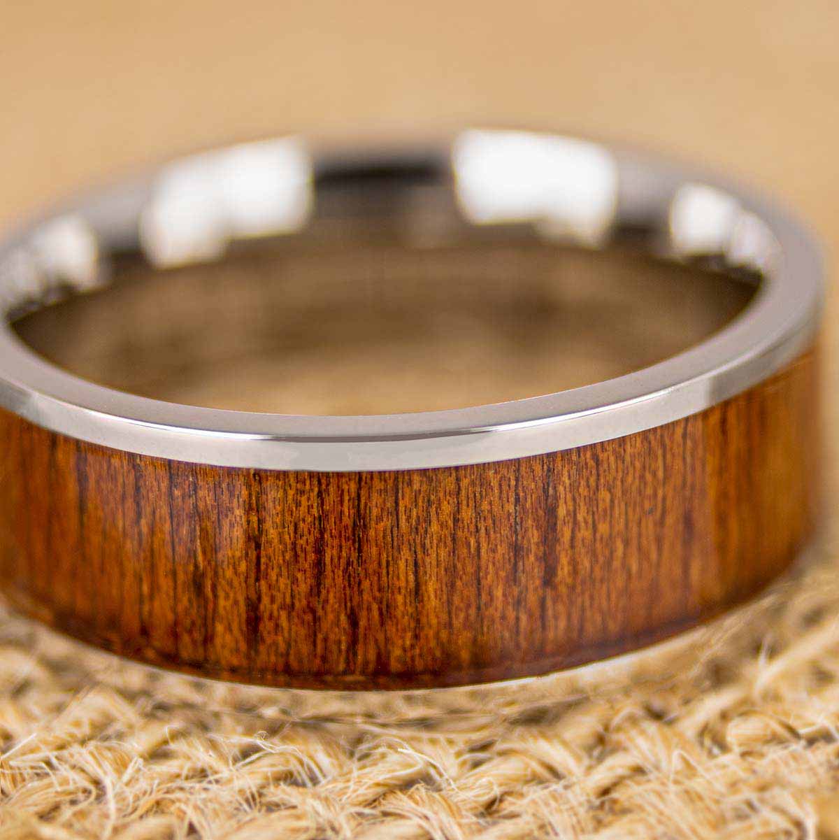 Flat Titanium Men's Wedding Band with Koa Wood Inlay