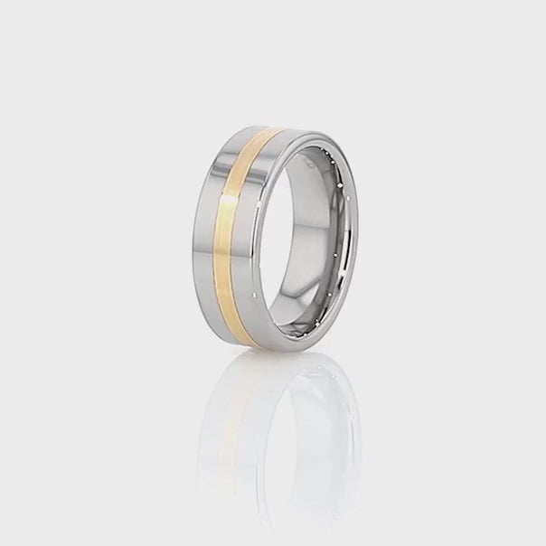 Flat Tungsten Men's Wedding Band with Gold Inlay