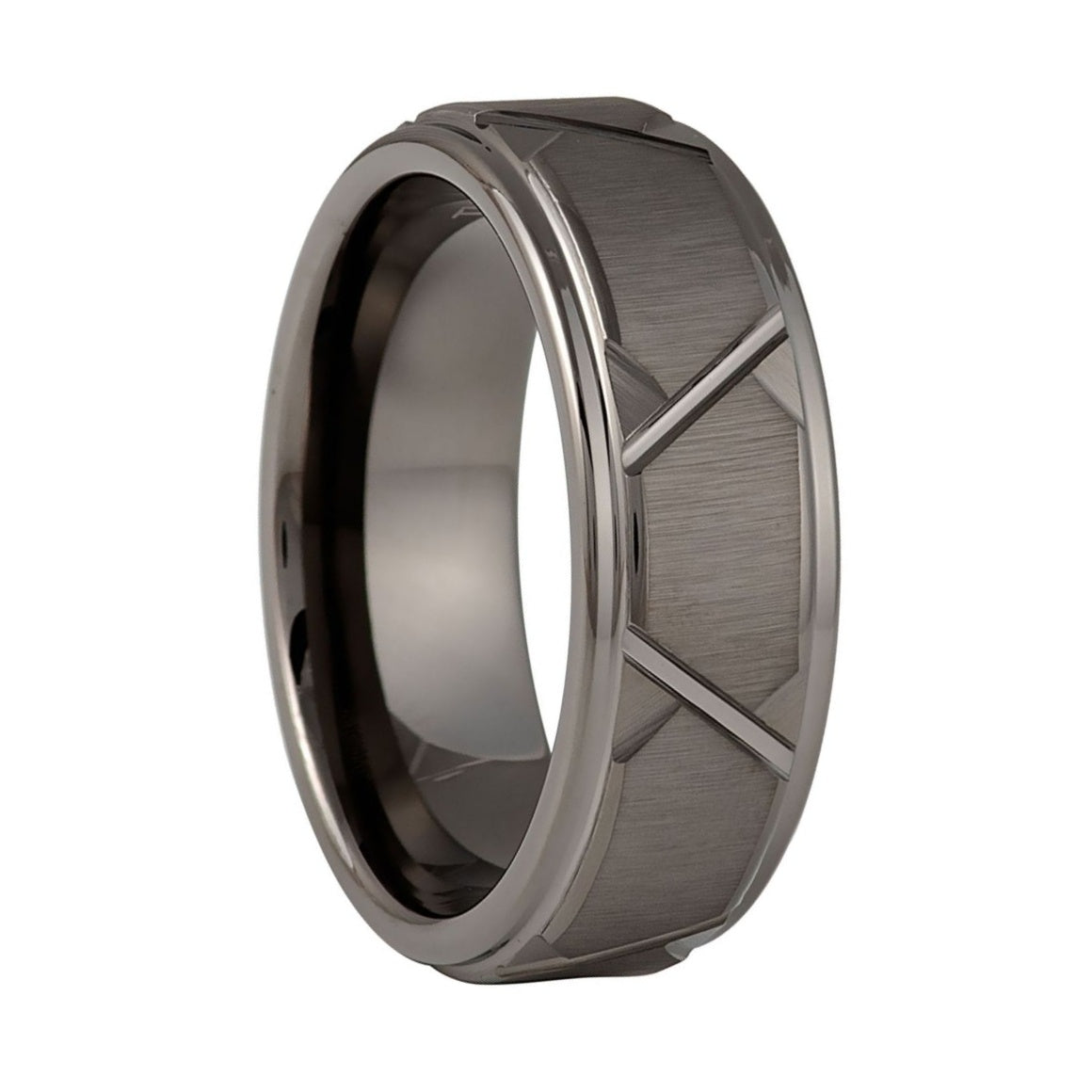 Geometric Grooved Gunmetal Tungsten Men's Wedding Band