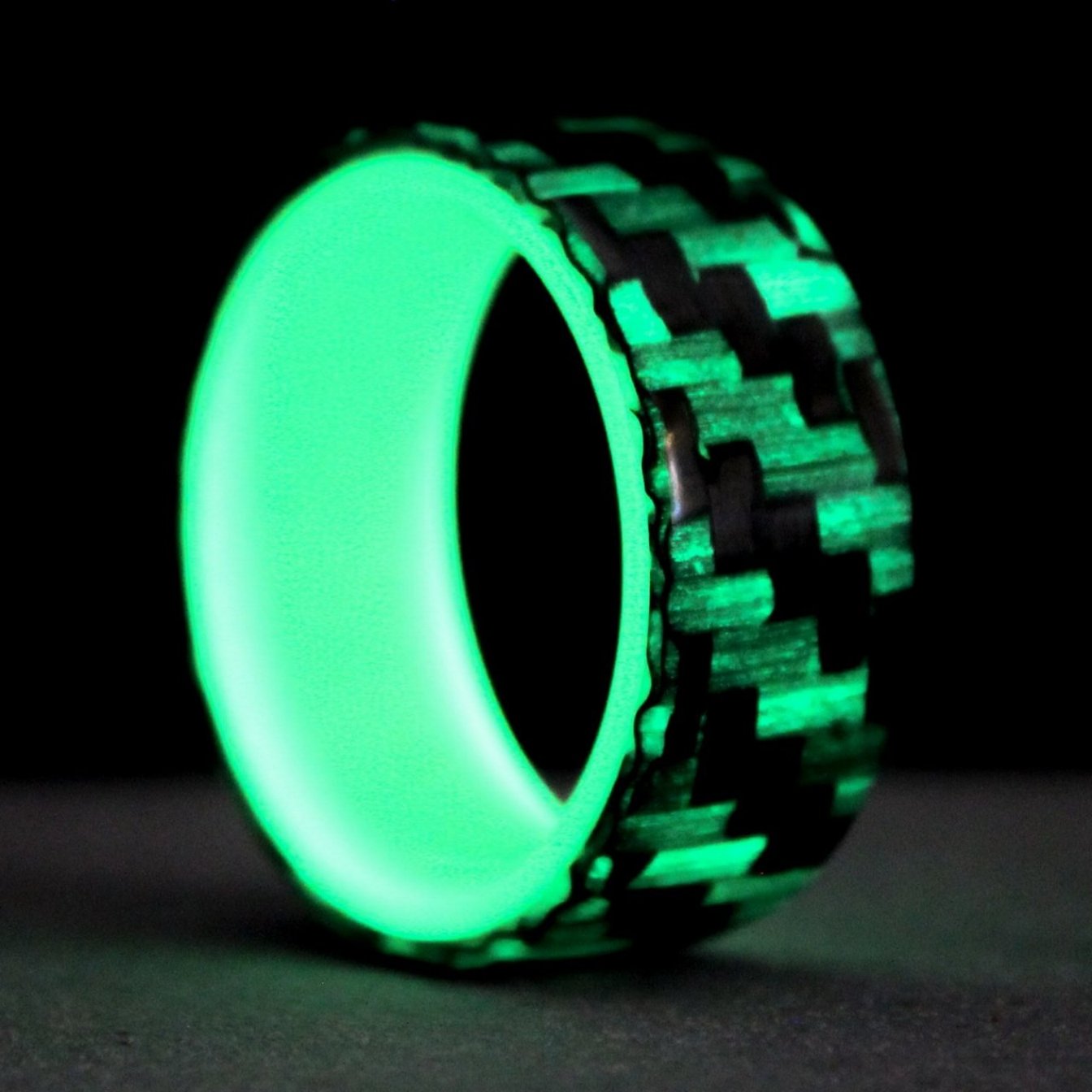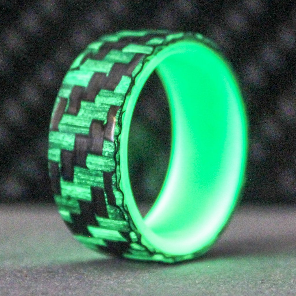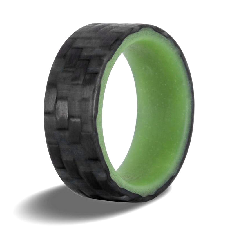 Glow in the Dark Carbon Fiber Men's Wedding Band with Green Interior