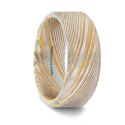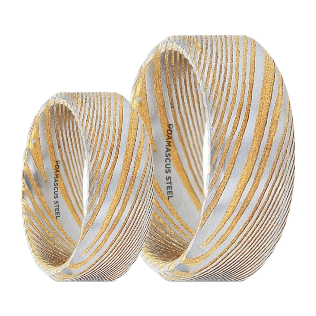 Gold Damascus Steel Couple's Matching Wedding Band Set