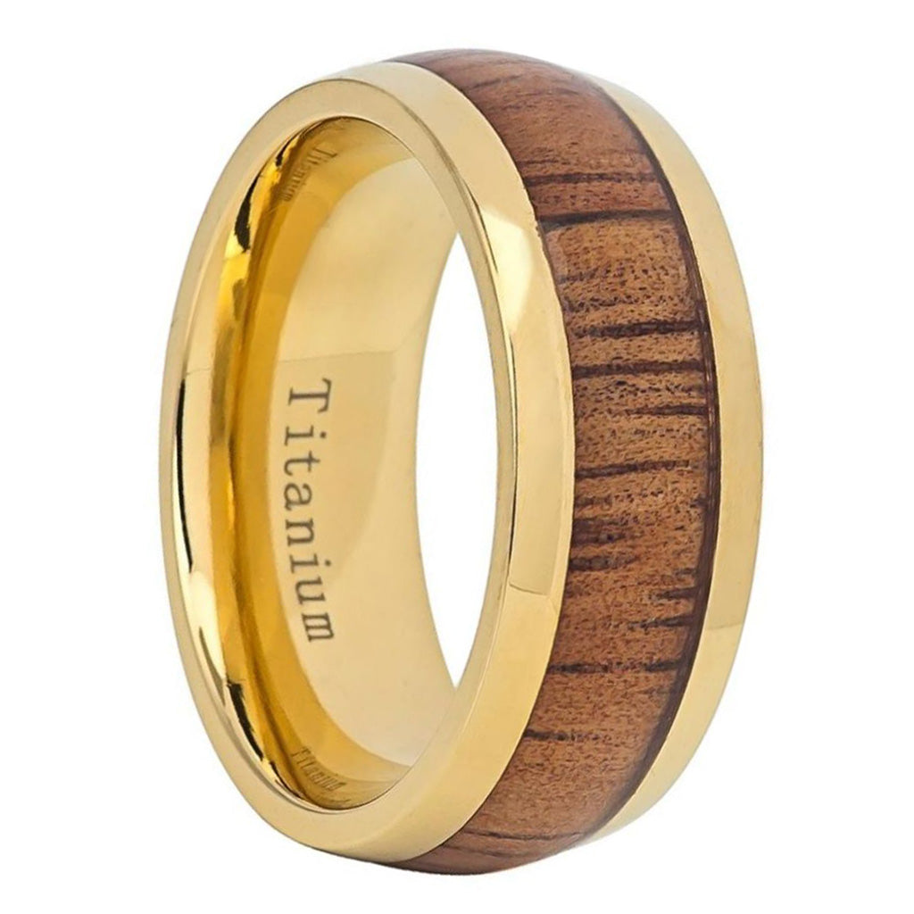 Gold Titanium Men's Wedding Band with Wood Inlay