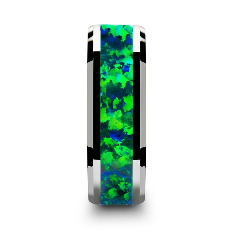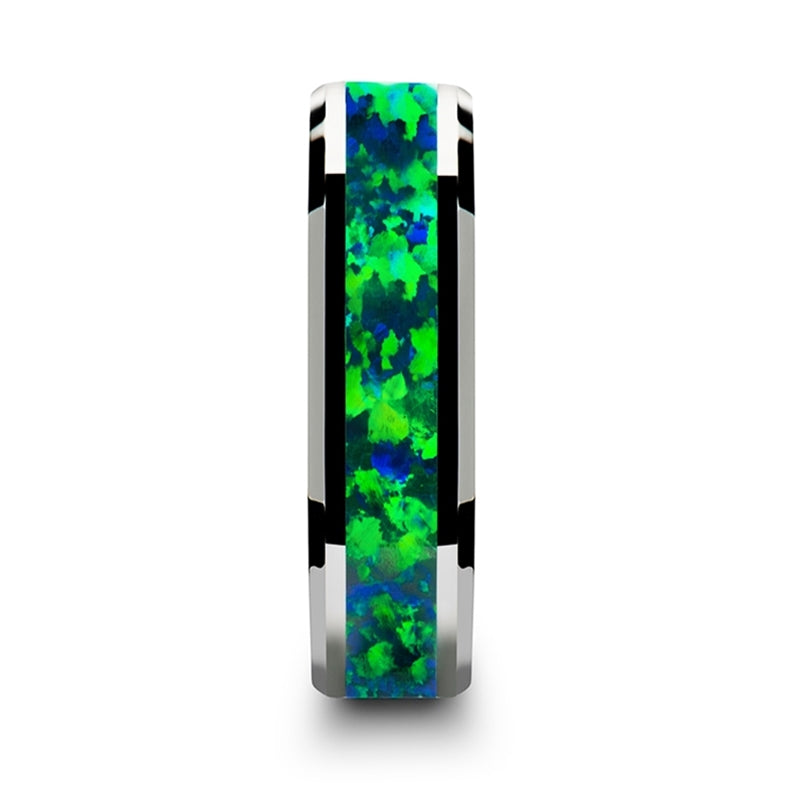 - Material: Tungsten Carbide with Green Opal