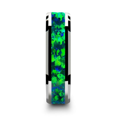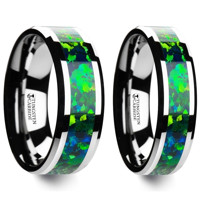 Green Blue Opal Inlay Tungsten Couple's Matching Wedding Band Set