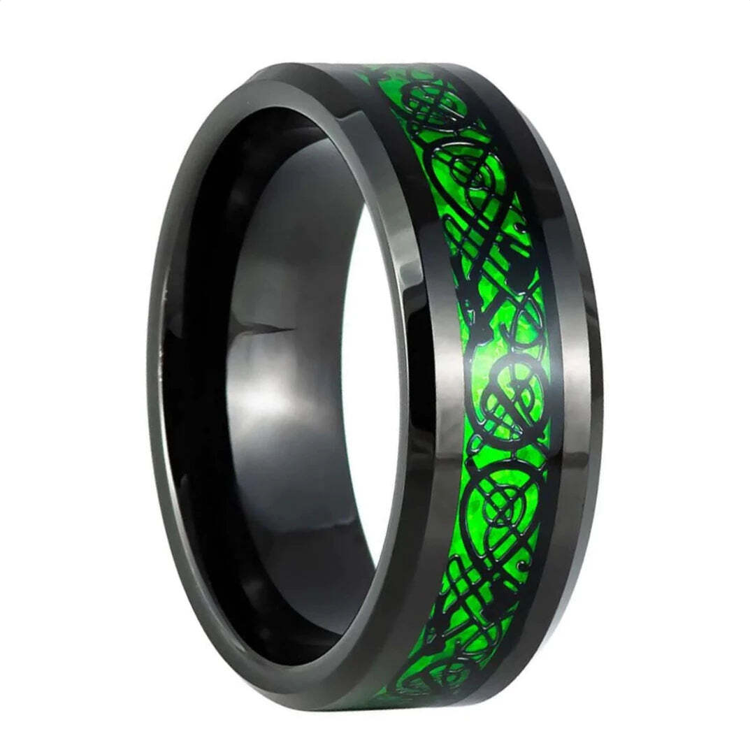 Green Celtic Dragon Knot Inlay Black Tungsten Men's Wedding Band