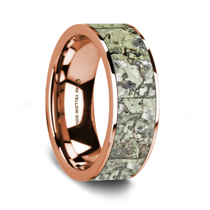 Green Dinosaur Bone Inlay 14k Rose Gold Men's Wedding Band