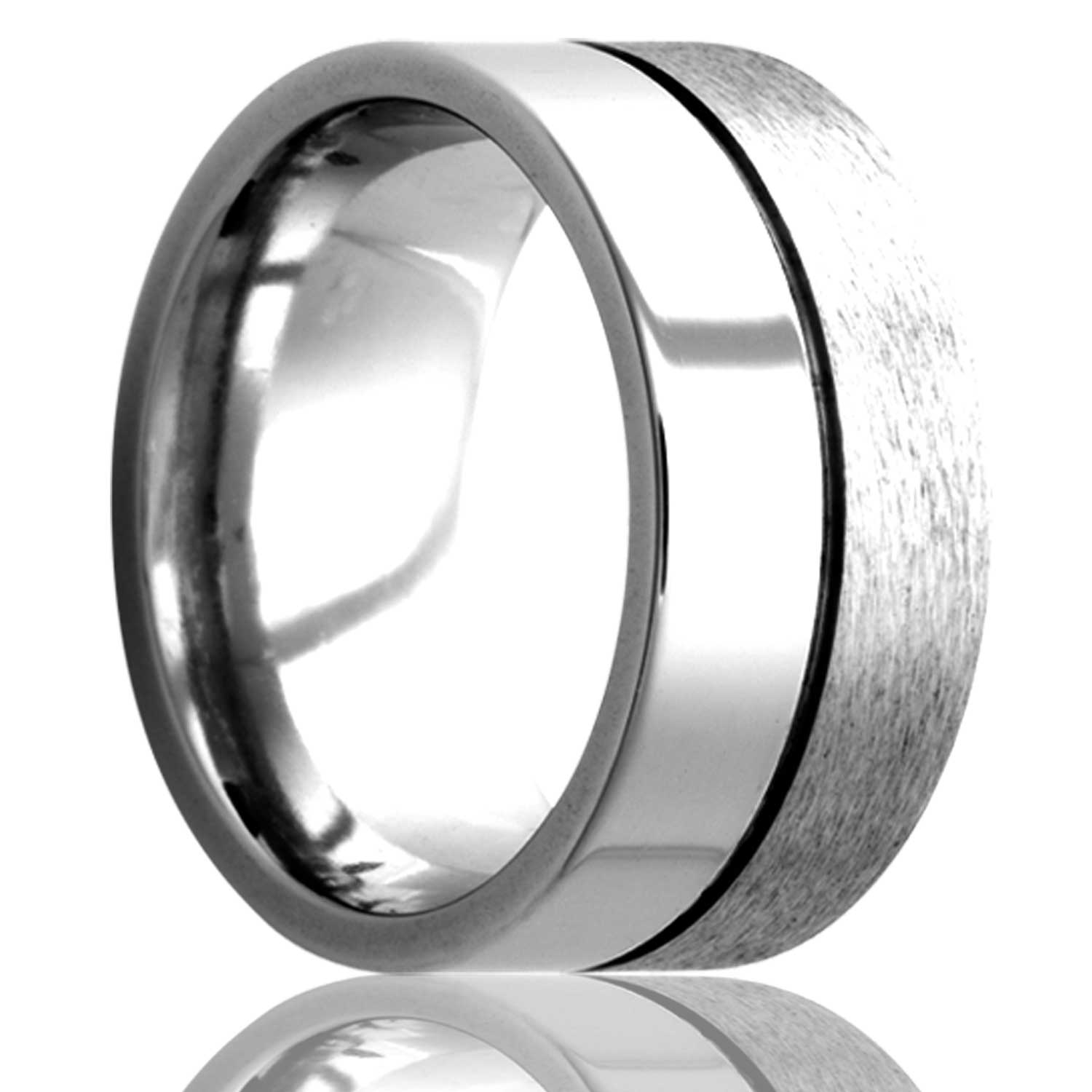 Grooved Cobalt Wedding Band with Half Polished & Satin Finishes