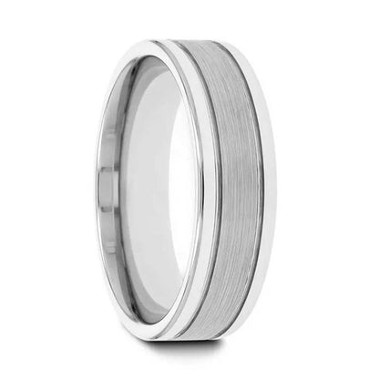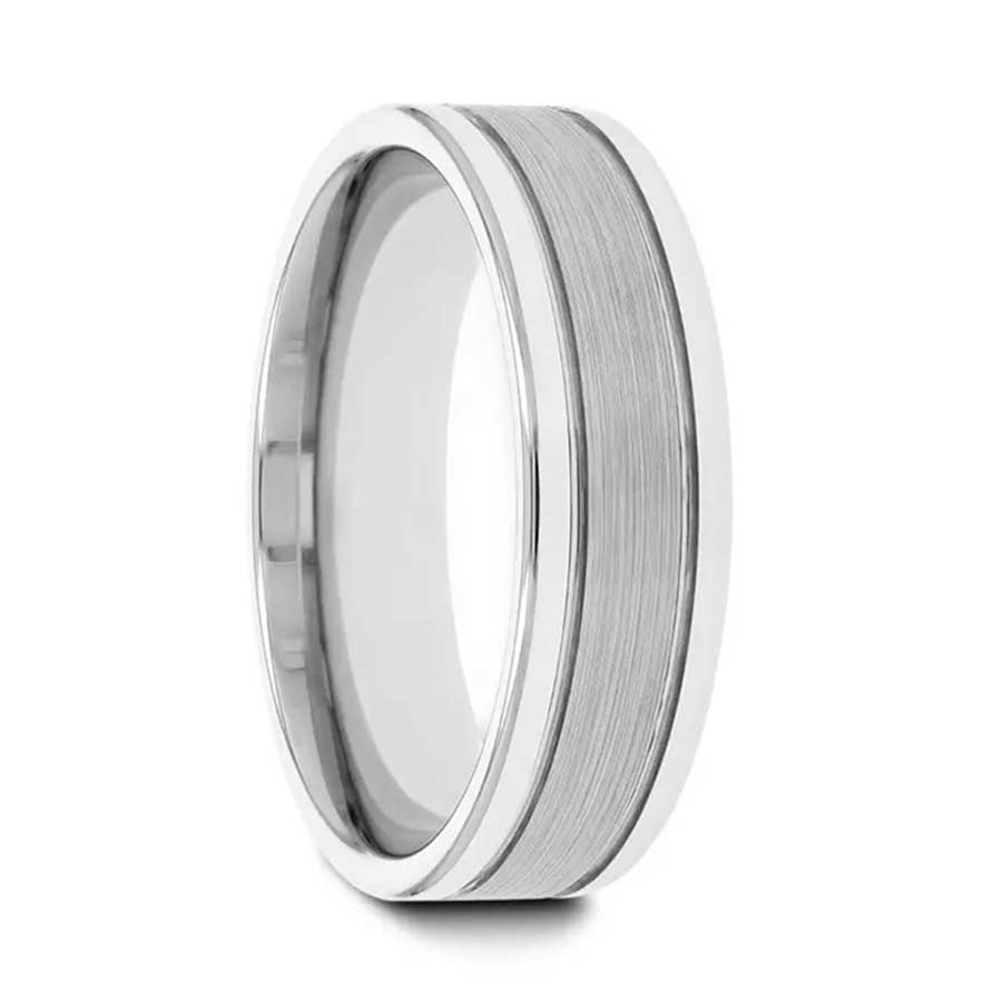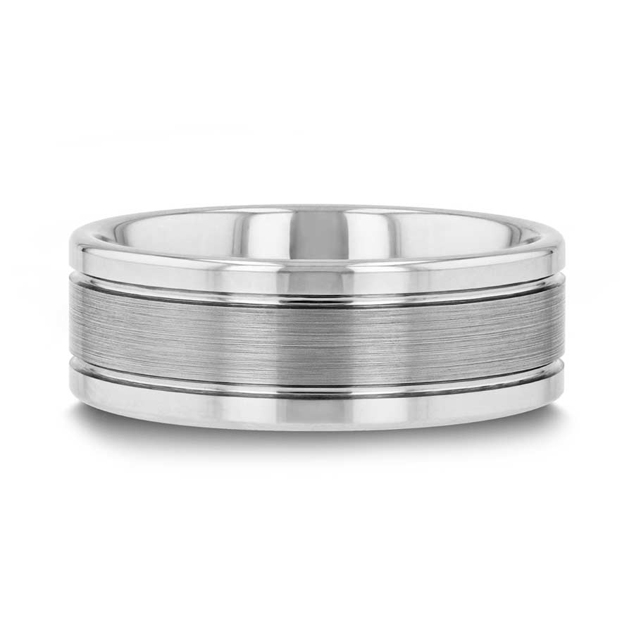 Grooved Tungsten Men's Wedding Band with Satin Finish