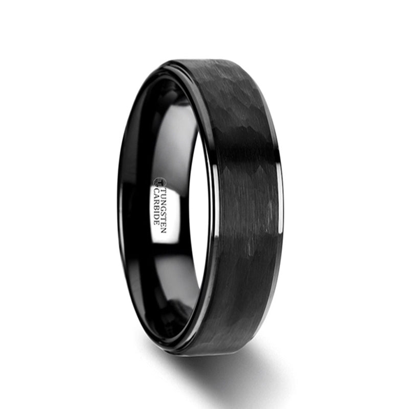 Hammered Black Tungsten Men's Wedding Band