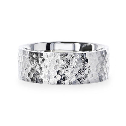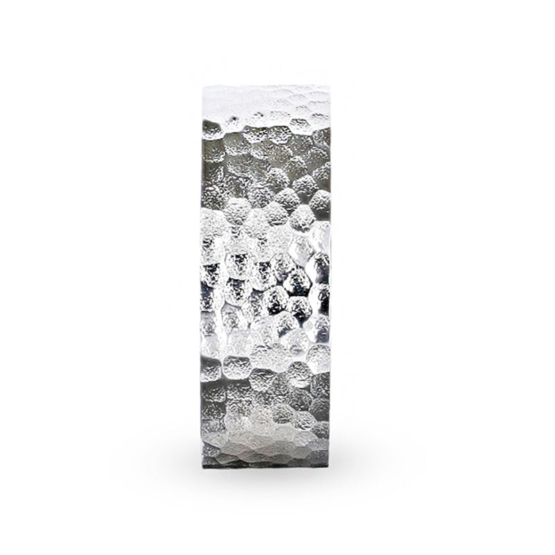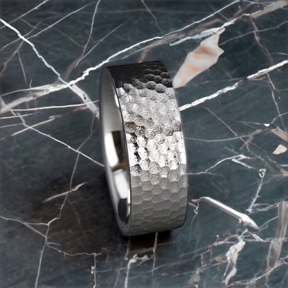 A minimalistic piece of jewelry with undeniable artistic flair, this band's hammered design adds dimension to its contemporary design. If you're a groom who loves standing out, this is the perfect ring for you. This hammered sterling silver wedding band is as elegant as it is stunning and engineered for the gentleman with refined taste. Extraordinary and not one bit austere, this sturdy piece will last for years to come. The ring sports a comfort fit, making it not only stylish but also functional. Its comfort fit guarantees this standout piece will always feel lightweight and natural on your finger. Stunning both in looks and durability, this ring won't easily show nicks and scratches thanks to its hammered design. An absolute must-have for a groom who's been looking for a minimalistic, authentic, and eye-catching wedding ring, this is one piece that will always brighten your day, from what it represents to how gorgeously rugged it is.