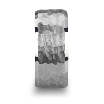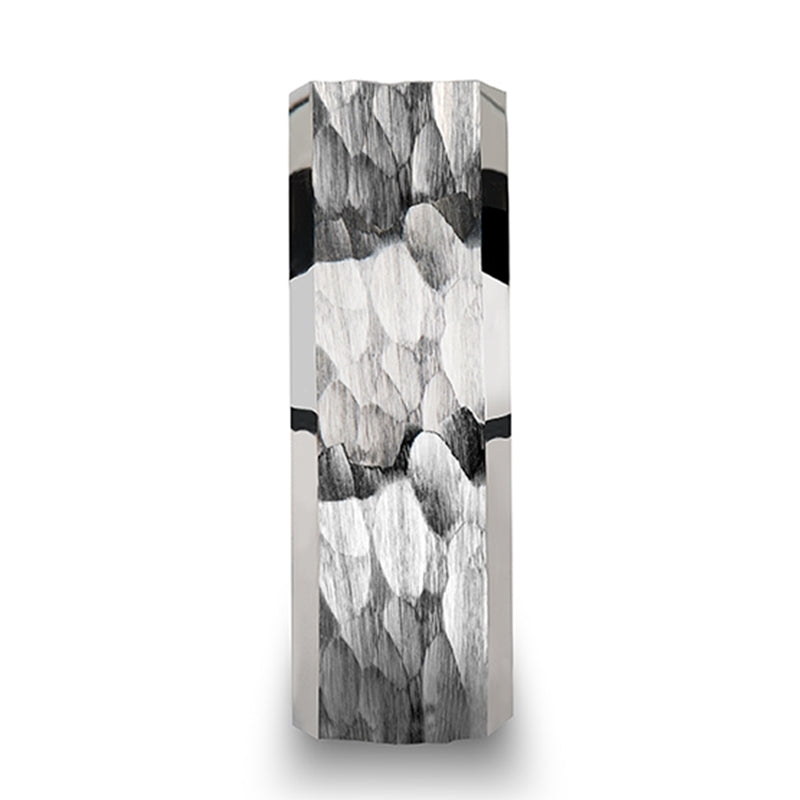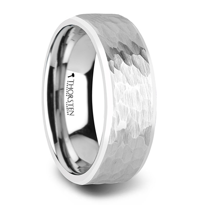 This hammered white tungsten men's wedding band is the perfect choice for guys who want to tie the knot in style. Made from the highest-quality tungsten, this ring is built to last a lifetime. It's not just a ring, it's a symbol of commitment and love that you'll cherish forever. The hammered finish gives this ring a unique and rustic look that is perfect for any guy who wants a wedding band that stands out from the rest. It's comfortable to wear and won't get in the way of your daily activities, whether you're at work or play. With a lifetime warranty that covers damage and size exchanges, you can rest assured that this ring will always fit perfectly and look as good as new. It's a great gift idea for the groom or the best man, and it's sure to be appreciated by anyone who loves high-quality jewelry. Whether you're getting married soon or just looking for a great everyday band, this hammered white tungsten men's wedding band is the perfect choice. So why settle for anything less than the best? Order yours today and experience the ultimate in style and durability.