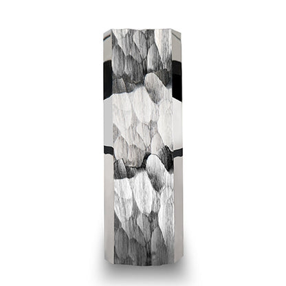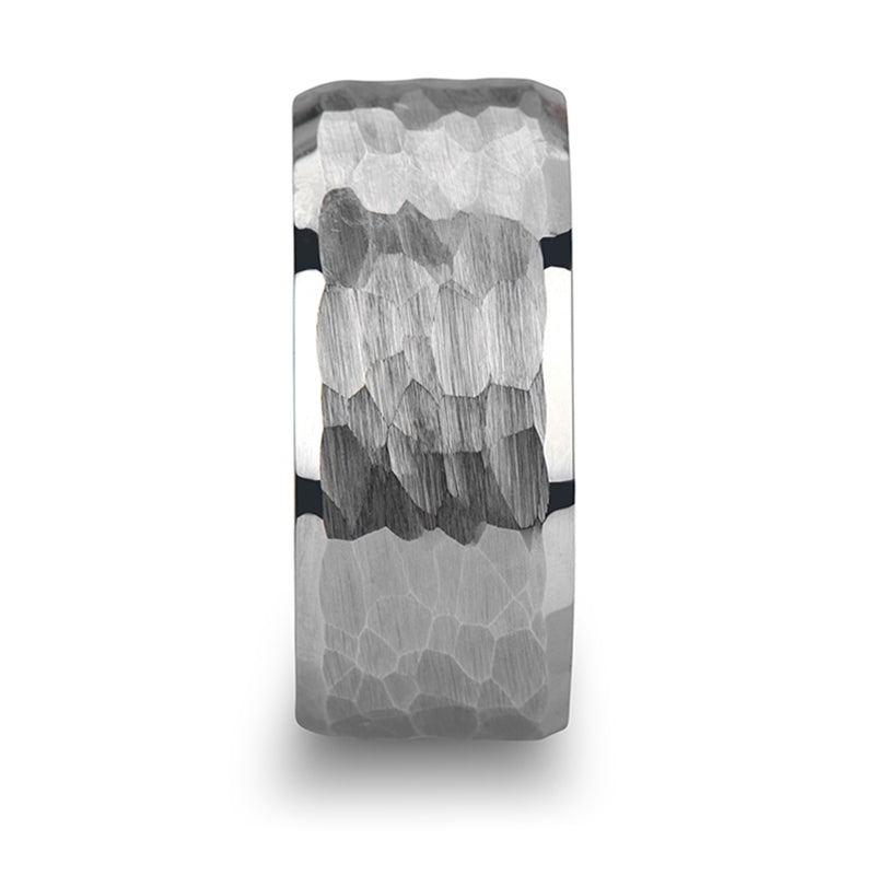 Love! The constant feeling of strong affection for another. What better way to show your love for another human being that to offer them a wedding ring? We can only think of one, and that can be found in the moment they are able to slide one on your matching finger in return, unifying the bond that is meant to last for ever. The hammered finished of this exquisite Tungsten carbide wedding band serves as a beautiful reminder that through the waves and torrents life may hammer against us this bond will remain beautifully unbroken and a deep source of strength and serenity. We congratulate you on finding your cove of peace in this windy, windy world.