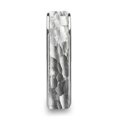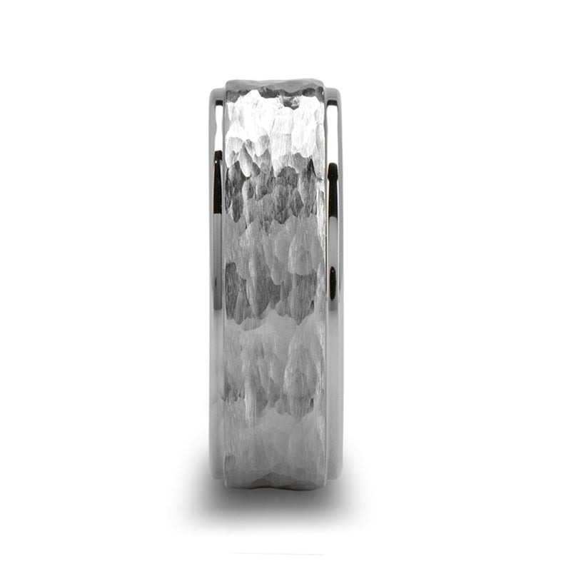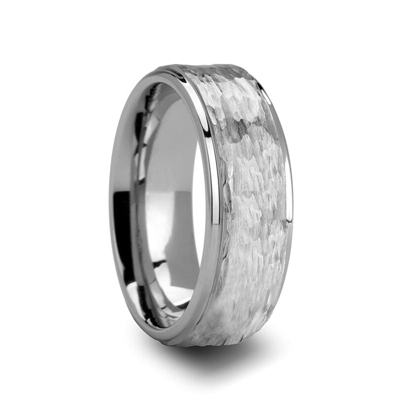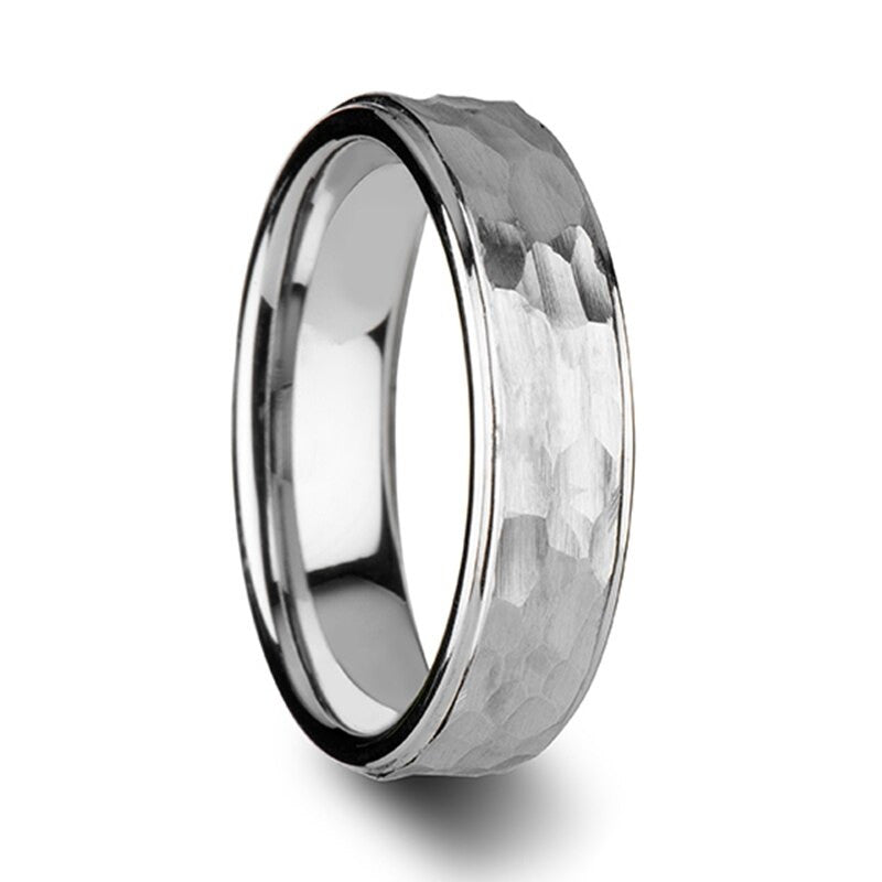 The perfect ring for the perfect couple! Our hammered white tungsten wedding band is the epitome of style and durability. The unique hammered texture adds depth and dimension to the ring, making it stand out from any other ring on the market. Not only is it visually stunning, but it's built to last. With a lifetime warranty that covers damage and size exchanges, you can rest assured that this ring will be a part of your lives forever. Our tungsten rings are scratch-resistant, making it a great option for those who work with their hands. Say goodbye to the constant worry and stress of damaging your ring. This wedding band is also hypoallergenic, making it safe for sensitive skin. This ring is perfect for those who want a high-quality, unique ring that will stand the test of time. It's a great gift for the love of your life, or as a special way to commemorate your wedding day. So why settle for a boring, run-of-the-mill ring when you can have a stunning and durable hammered white tungsten wedding band? Order yours today and join the ranks of those who have discovered the perfect ring for an everlasting love.