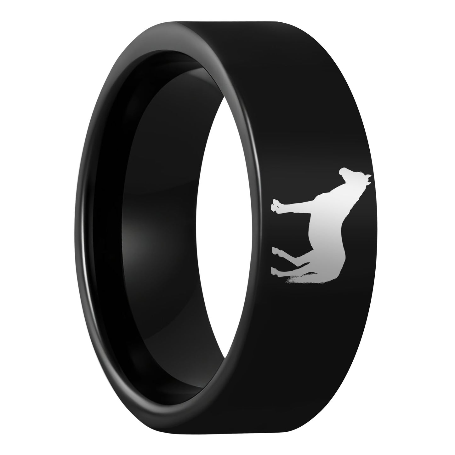 One of the most majestic and respected animals is the horse. Known for their strength and speed, horses helped develop the new world. If you are searching for a wedding band that incorporates a love of horses into its design, you have come to the right place. This tungsten carbide wedding ring has been engraved with a stunning horse head pattern encircling the band. With such a wide selection you are sure to find the width you are looking for! Check out the personalized engraving option to have a message engraved in the band for your loved one. This ring is perfect for nature lovers, horse enthusiasts, and anyone looking for a unique and timeless ring. The horse engraving is intricate and detailed, making a powerful statement about your love and commitment. One of the best things about this ring is its durability. Made from high-quality tungsten, it's resistant to scratches, dents, and everyday wear and tear. You won't have to worry about damaging your ring while you're out enjoying life. Plus, it comes with a lifetime warranty, so you can rest assured that you'll be able to exchange it if it ever gets damaged or if you need a different size. The black tungsten finish is sleek and modern, making it the perfect complement to any style.