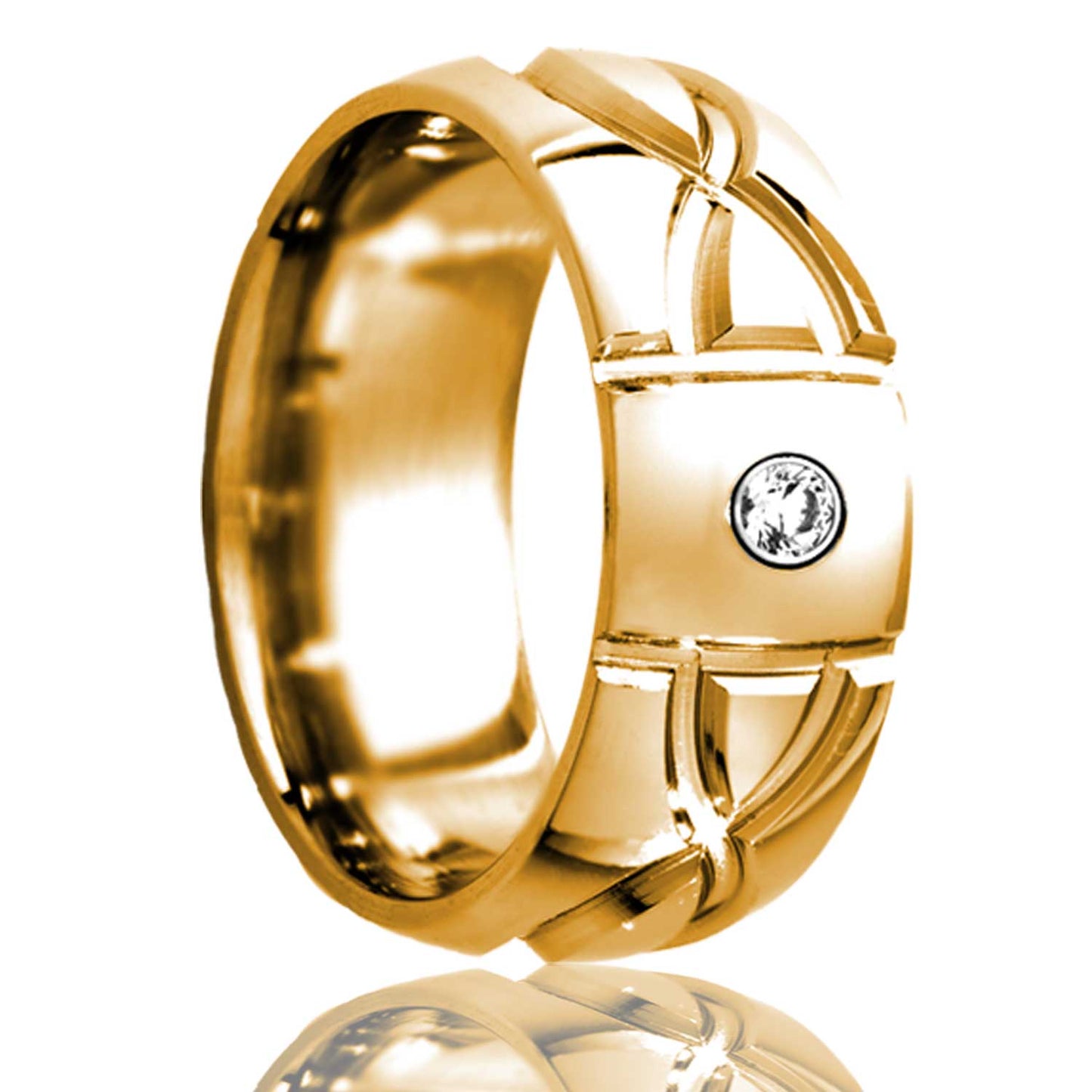 Infinity Waves Domed 14k Gold Wedding Band with Diamond