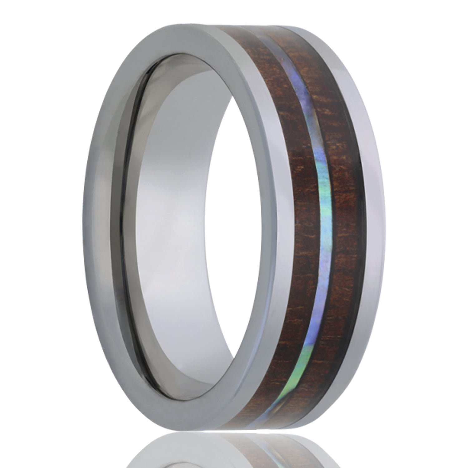 Koa Wood & Abalone Inlay Tungsten Wedding Band