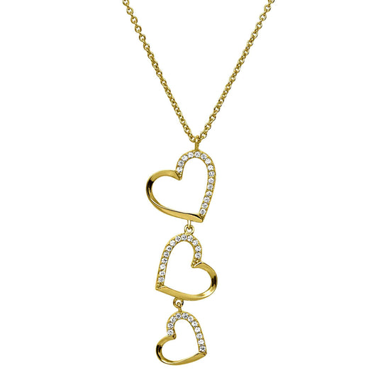 Sterling Silver Three Falling Hearts Necklace with Simulated Diamonds