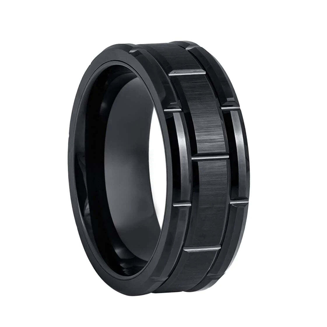This line grooved brushed black tungsten men's wedding band is the perfect choice for those who want a high-quality wedding band while remaining affordable! Made from durable tungsten, this band is built to last and withstand the test of time. The brushed black finish gives it a sleek and modern look, while the grooves add a unique touch of style. Perfect for the fashion-forward groom who wants to make a statement on his big day. Not just for weddings, this band can also be worn as a fashion accessory to add a touch of sophistication to any outfit. With its comfortable fit and stylish design, this tungsten band is sure to impress. Plus, it is affordable like other high-end jewelry pieces! Make a bold statement with this line grooved brushed black tungsten men's wedding band.