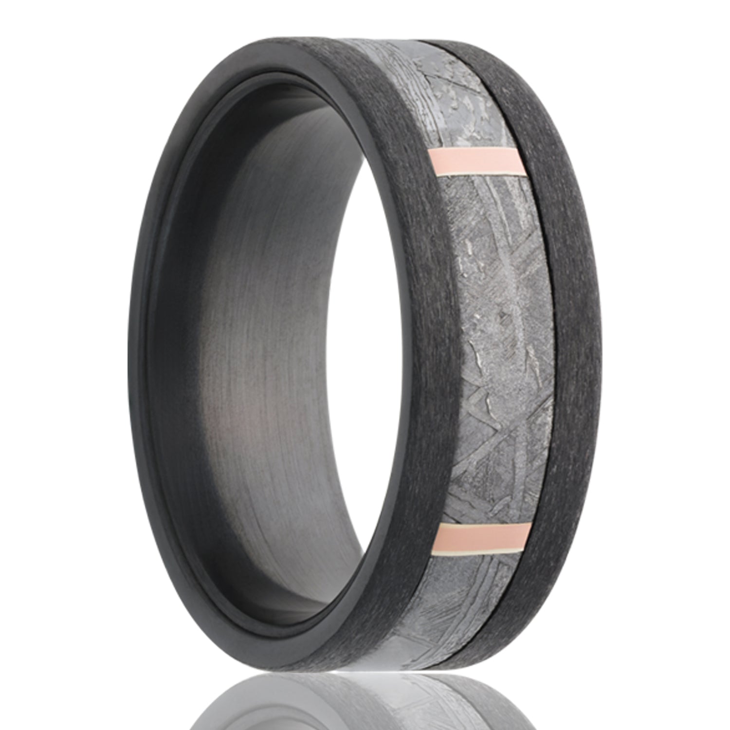 Meteorite & 14k Rose Gold Inlay Satin Zirconium Wedding Band