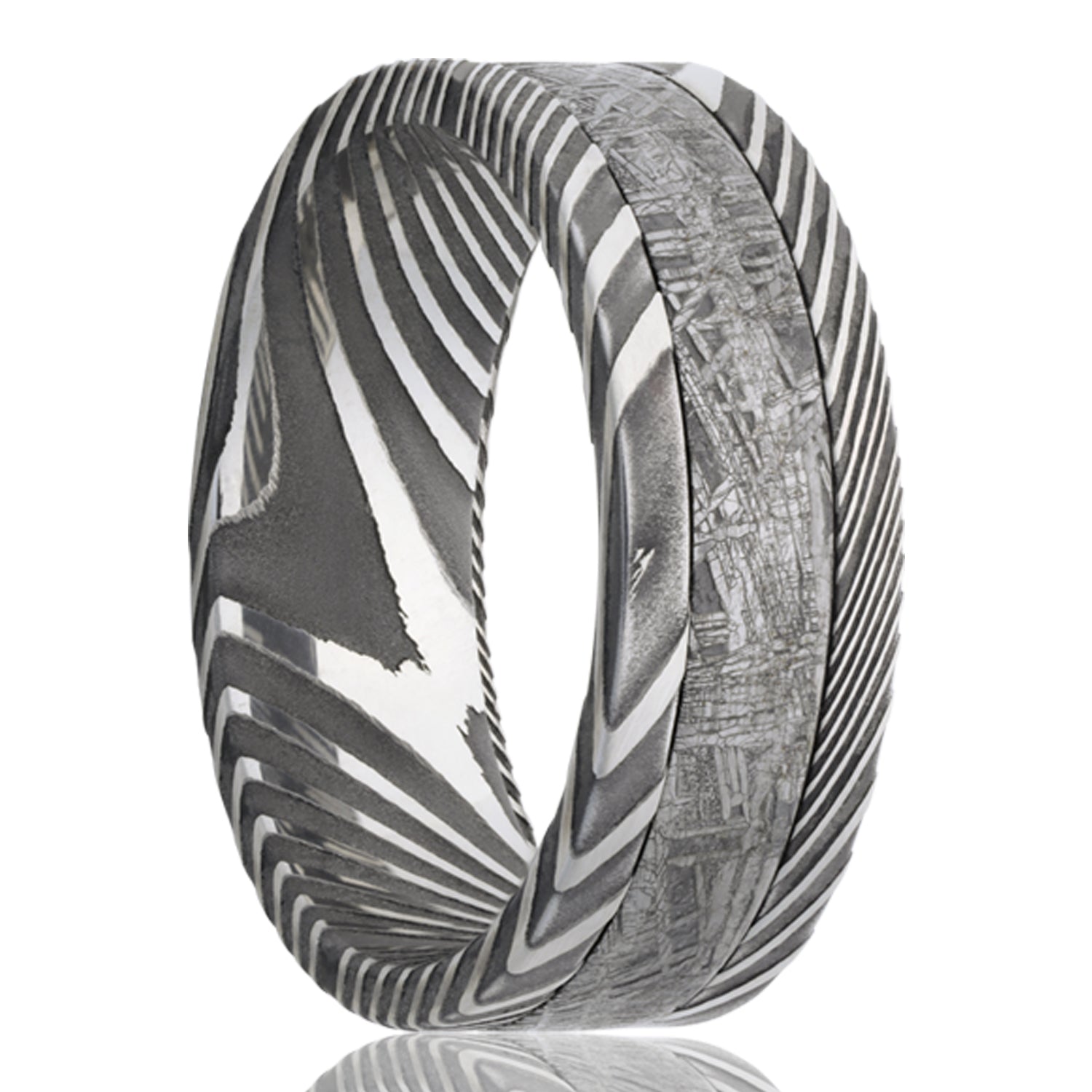 Meteorite Inlay Damascus Steel Men's Wedding Band