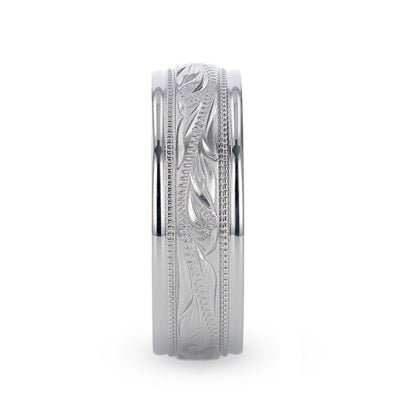 The perfect ring should get all the glory as a choice wedding jewelry. After all, it's the band you'll be sporting to represent your beautiful union for years to come. This milgrain patterned ring is so much more than a symbol of your promise–it will reflect your unique style and ethos. This stunner will always echo your individuality and style. It's the kind of ring that speaks to you and celebrates your love, every day, for the rest of your lives. More than that, this exceptional piece is as comfortable, thanks to its comfort-fit, as it is momentous, making it an excellent choice to stand out from the crowd. Crafted from the highest quality material, this ring has a contemporary appearance and is extremely durable, which makes it sturdy for timeless everyday wear. Further, it's milgrain finish goes with any styling. Say yes to this ring and 'I do' to the love of your life with this enduring, precious wedding band.