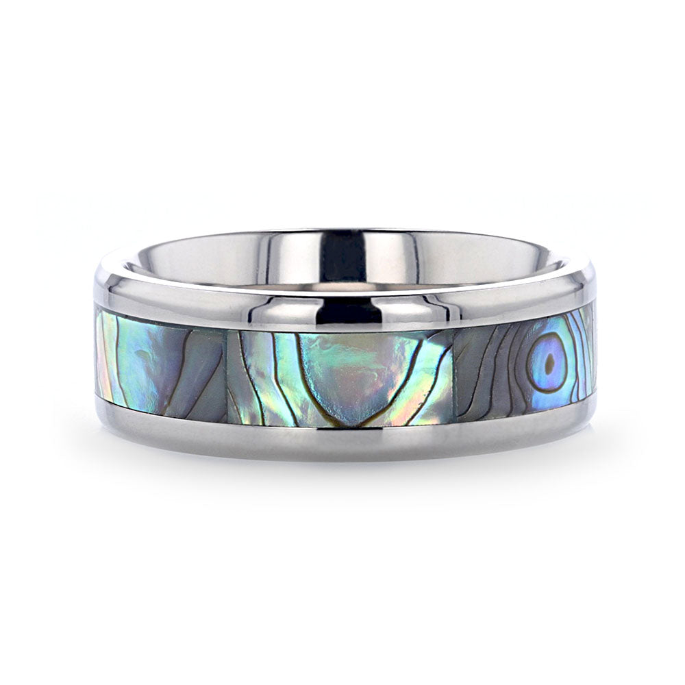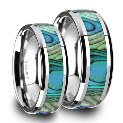 Mother of Pearl Inlaid Titanium Couple's Matching Wedding Band Set