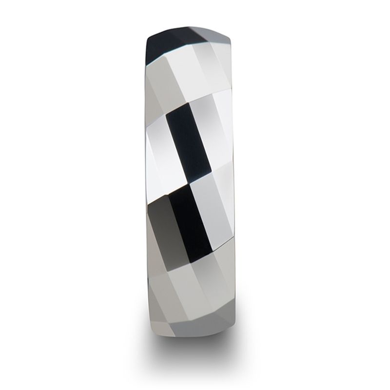 This multi-faceted tungsten wedding band is the perfect blend of style and durability, making it a must-have for anyone looking for a ring that can keep up with their active lifestyle. Made from high-quality tungsten, this ring is resistant to scratches and wear, ensuring that it stays looking as good as new for years to come. Not only does this ring look great, but it also feels comfortable on your finger thanks to its smooth and polished finish. And with its multi-faceted design, it catches the light in all the right ways, making it a real showstopper. Plus, the lifetime warranty ensures that you can wear this ring with confidence, knowing that it's protected against any damage or size changes that may occur over time. And with its affordable price point, this ring is the perfect option for anyone looking for a high-quality wedding band while remaining affordable. So why settle for an ordinary ring when you can have a multi-faceted tungsten wedding band that truly stands out? Whether you're shopping for yourself or looking for the perfect gift for someone special, this ring is sure to impress. Order yours today and experience the perfect combination of style and durability.