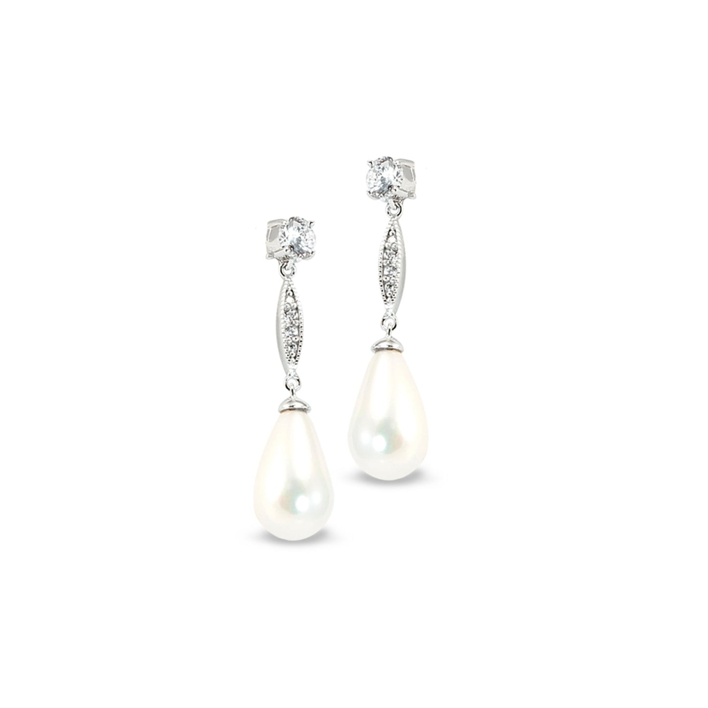 Pearl Drop Earrings with Simulated Diamonds