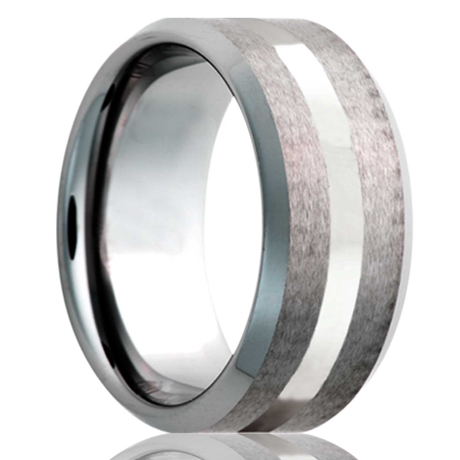 Platinum Inlay Satin Tungsten Wedding Band with Beveled Edges