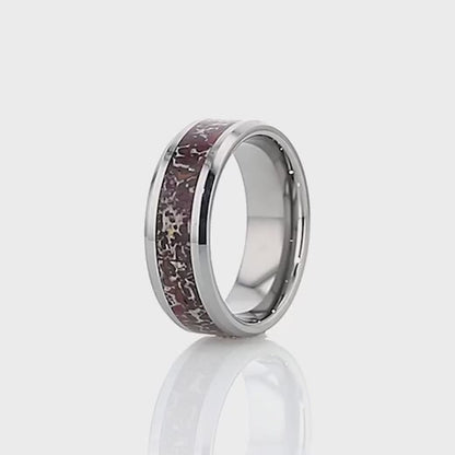 This marvelous set of wedding rings will fully express the true love that you have for one another and will touch the very core of your hearts. These matching bands will make your wedding day a special and unforgettable occasion. These symbols of love will forever maintain their fervor and allure. These Tungsten Carbide rings are not only bold but also highly durable. As one of the hardest material in existence, you are guaranteed of the rings' strength as well as longevity. You will fall in love with these captivating pieces that feature red dinosaur bone inlaid.